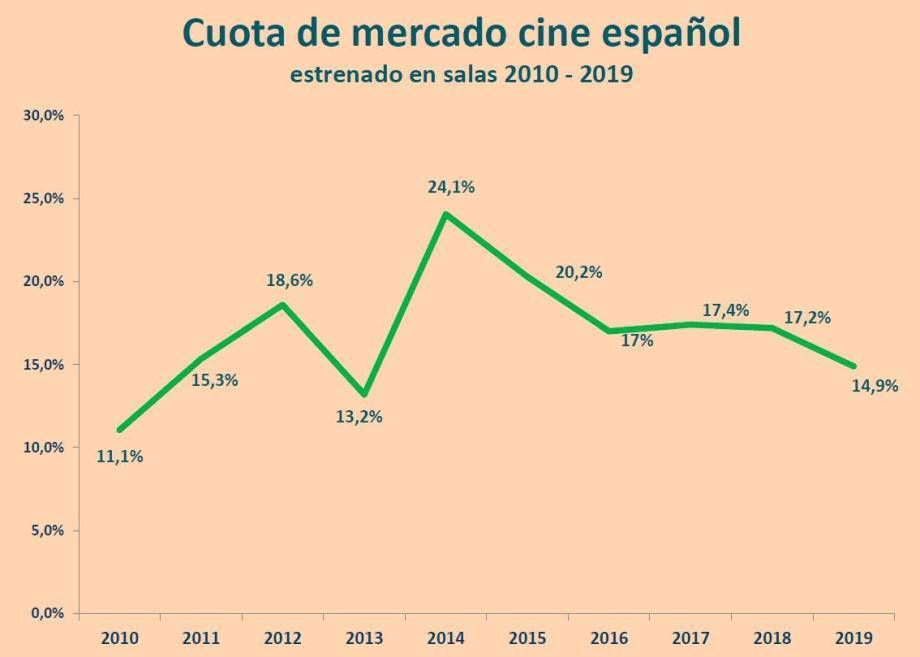 Principales indicadores del cine nacional en España 2019