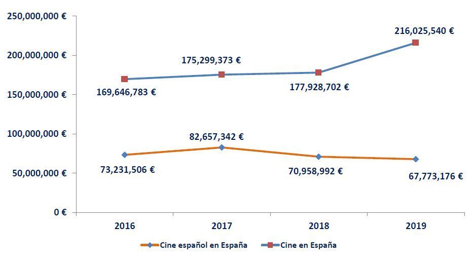 En ambos casos, se compara el Top 10 del cine español con el del todo el cine estrenado en España, así como las tablas correspondientes al año 2019 de los mencionados Top 10.